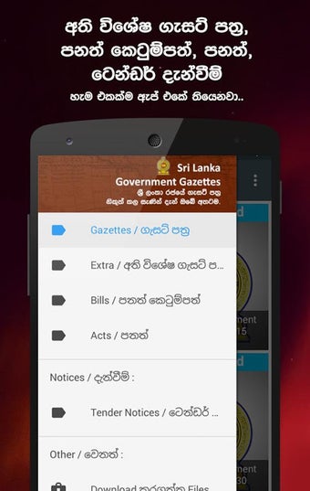 Aplikacja, choć jeszcze w fazie rozwoju, stara się dostarczać użytkownikom informacje na bieżąco. Wymaga zainstalowania czytnika PDF oraz obsługi języków syngaleskiego lub tamilskiego w urządzeniu mobilnym. Wszystkie publikacje są pobierane z oficjalnych źródeł, co zapewnia ich wiarygodność. Użytkownicy mogą korzystać z tej aplikacji, aby łatwiej odnaleźć potrzebne informacje i być na bieżąco z wydarzeniami rządowymi.